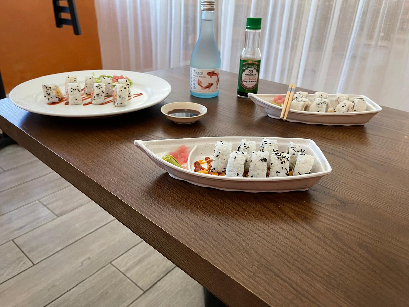 items, Sushi and Caribbean Barbeque in a